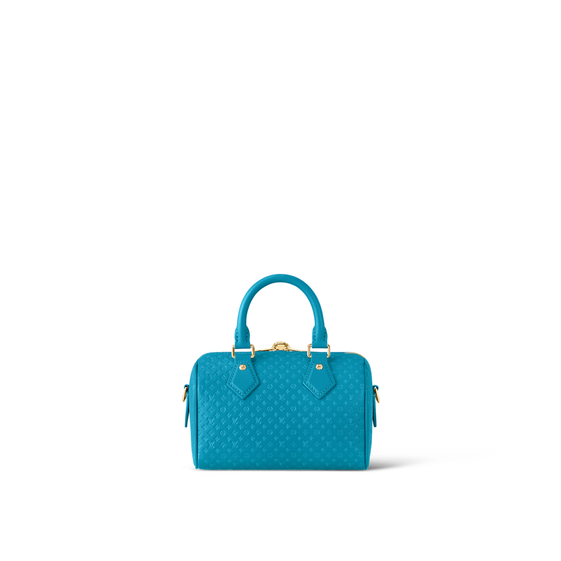 Fashioned from calfskin with a very small Monogram motif embossed then printed on the leather, this Speedy 20 handbag is part of the Nanogram capsule. Its inimitable silhouette, and engraved padlock, make this bag instantly recognizable. A removable and adjustable braided-chain-and-leather strap enables shoulder or cross-body carry.
