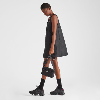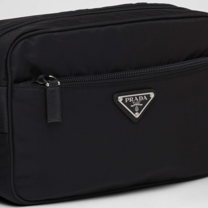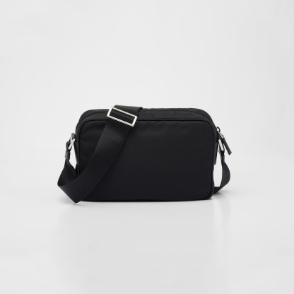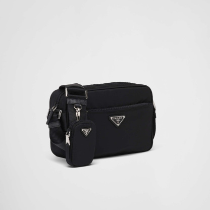 Functionality and sleek lines meet in this shoulder bag with a compact, rectangular design that recalls the streetwear world. Accented with the enameled metal triangle logo and a removable pouch that emphasizes its contemporary character, the accessory is made of innovative Re-Nylon fabric produced from recycled, purified plastic material collected in the ocean.